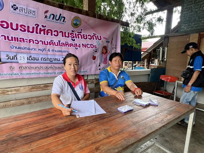 รายละเอียด : วันที่ 23 กรกฎาคม 2568 เวลา 09.00 น. องค์การบริหารส่วนตำบลแม่ลาน โดย นายโสภณ มีมัง นายกองค์การบริหารส่วนตำบลแม่ลาน มอบหมายให้ นางรัตติกร ต๊ะกาบโพธิ์ เลขานุการนายกองค์การบริหารส่วนตำบลแม่ลาน เป็นประธานในพิธีเปิดโครงการอบรมให้ความรู้เกี่ยวกับโรคเบาหวานและความดันโลหิตสูง NCDs บ้านแม่กองวะ หมู่ที่ 4 ประจำปีงบประมาณ พ.ศ.2568