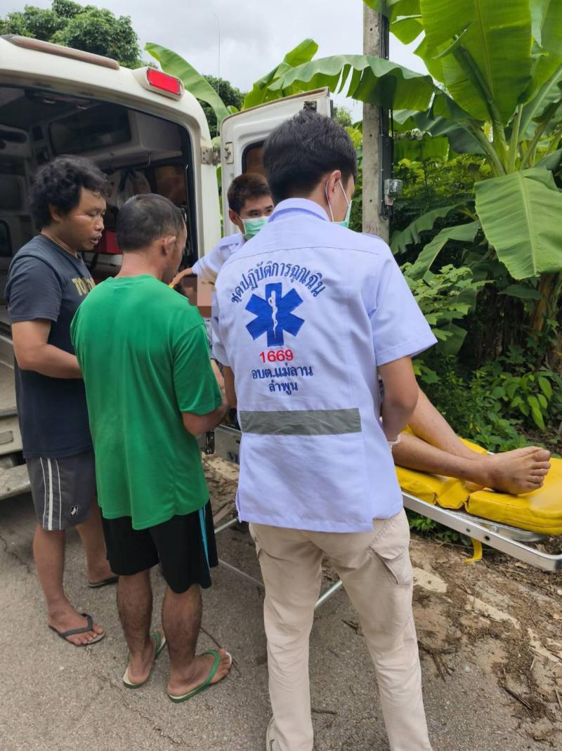 ออกเหตุรับผู้บาดเจ็บบ้านห้วยทรายขาว หมู่ที่ 7 ตำบลแม่ลาน เนื่องจากมีอาการวูบ ตกรถมอเตอร์ไซค์ ทำการปฐมพยาบาลเบื้องต้น นำตัวส่งโรงพยาบาลลี้ อำเภอลี้ จังหวัดลำพูน เพื่อทำการรักษาต่อไป