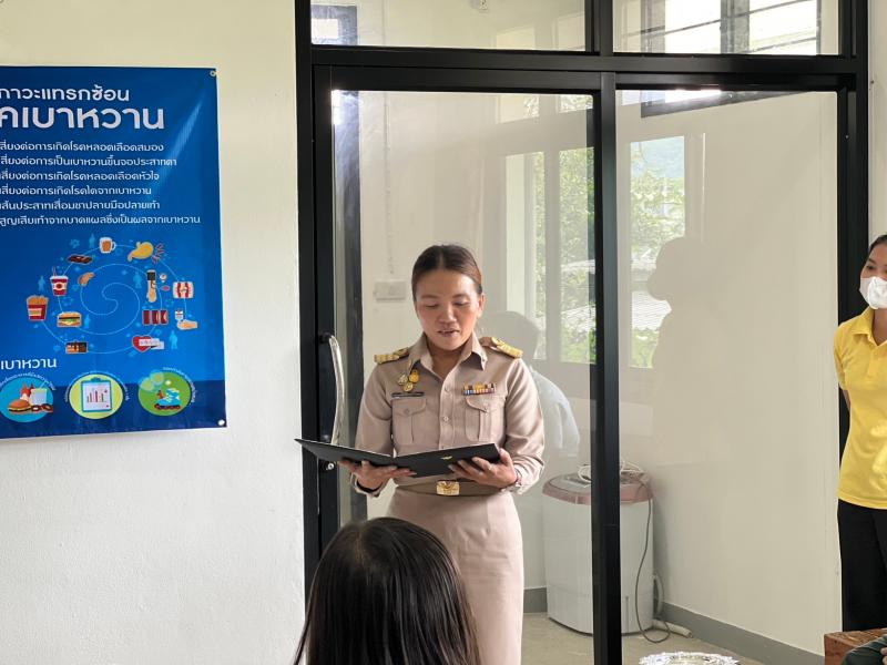 รายละเอียด : วันที่ 30 ตุลาคม 2566 เวลา 09.00 น. องค์การบริหารส่วนตำบลแม่ลาน โดย นายโสภณ มีมัง นายกองค์การบริหารส่วนตำบลแม่ลาน มอบหมายให้ นางชนันนิดา คำทา รองนายกองค์การบริหารส่วนตำบลแม่ลาน พร้อมด้วย นายประวิทย์ ล่าเพ็ง ผู้อำนวยการกองการศึกษาองค์การบริหารส่วนตำบลแม่ลาน นางสอิงคราทย์ สังพิชัย นักพัฒนาชุมชน นางสาวนริศรา ใจสุยะ เจ้าพนักงานสาธารณสุขปฏิบัติงาน นายเอนก สีวิจี๋ ผู้ช่วยนักวิเคราะห์นโยบายและแผน และเจ้าหน้าที่องค์การบริหารส่วนตำบลแม่ลาน ร่วมพิธีปิดโครงการโรงเรียนเบาหวานวิทยาตำบลแม่ลาน พร้อมมอบใบประกาศนียบัตรให้นักเรียน โดยมี นางชนันนิดา คำทา รองนายกองค์การบริหารส่วนตำบลแม่ลาน เป็นประธานในพิธีฯ แทนนายกองค์การบริหารส่วนตำบลแม่ลาน ณ ห้องประชุมโรงพยาบาลส่งเสริมสุขภาพตำบลแม่ลาน อำเภอลี้ จังหวัดลำพูน