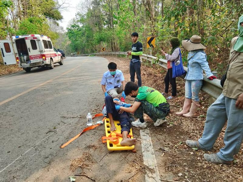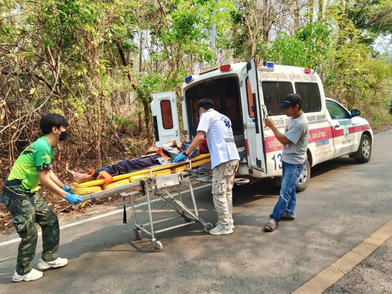 รายละเอียด : วันที่ 9 เมษายน 2567 องค์การบริหารส่วนตำบลแม่ลาน โดย นายโสภณ มีมัง นายกองค์การบริหารส่วนตำบลแม่ลาน มอบหมายให้เจ้าหน้าที่กู้ชีพองค์การบริหารส่วนตำบลแม่ลาน ออกเหตุรับผู้บาดเจ็บ เนื่องจากรถจักรยานยนต์ล้มเอง ถนนสายก้อ - ผาต้าย หมู่ที่ 1 ทำการปฐมพยาบาลเบื้องต้น ทำแผลและใส่ Hard collar ดามคอ นำตัวส่งโรงพยาบาลลี้ อำเภอลี้ จังหวัดลำพูน เพื่อทำการรักษาต่อไป
