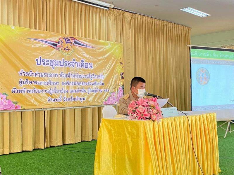 รายละเอียด : วันที่ 3 สิงหาคม 2565 องค์การบริหารส่วนตำบลแม่ลาน โดยนายโสภณ มีมัง นายกองค์การบริหารส่วนตำบลแม่ลาน มอบหมายให้นายจิรายุส สุทะยะ เลขานุการนายกองค์การบริหารส่วนตำบลแม่ลาน และนายสมสมัย ปองนาน ปลัดองค์การบริหารส่วนตำบลแม่ลาน เข้าร่วมประชุมหัวหน้าส่วนราชการ หัวหน้าหน่วยงานที่เกี่ยวข้อง และการประชุมกำนันผู้ใหญ่บ้าน ฯลฯ ประจำเดือน สิงหาคม 2565 โดยมี นายวิวัฒน์ จันทร์โอภาส นายอำเภอลี้ เป็นประธานเปิดการประชุมฯ ณ หอประชุมเมืองนักบุญ ที่ว่าการอำเภอลี้ จังหวัดลำพูน