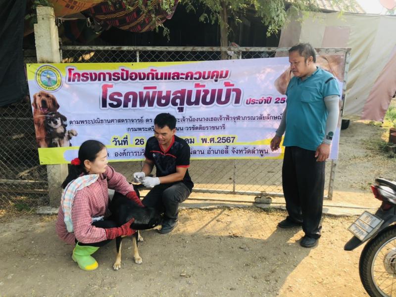 วันที่ 3 เมษายน 2567 องค์การบริหารส่วนตำบลแม่ลาน นำโดย นายโสภณ มีมัง นายกองค์การบริหารส่วนตำบลแม่ลาน พร้อม พนักงานและเจ้าหน้าที่องค์การบริหารส่วนตำบลแม่ลาน ออกให้บริการฉีดวัคซีนป้องกันโรคพิษสุนัขบ้า ตามโครงการสัตว์ปลอดโรค คนปลอดภัย จากโรคพิษสุนัขบ้า ตามพระปณิธานศาสตราจารย์ ดร.สมเด็จพระเจ้าน้องนางเธอ เจ้าฟ้าจุฬาภรณวลัยลักษณ์ อัครราชกุมารี กรมพระศรีสวางควัฒน วรขัตติยราชนารี ประจำปีงบประมาณ พ.ศ.2567 ณ บ้านแม่กองวะ หมู่ที่ 4 ตำบลแม่ลาน อำเภอลี้ จังหวัดลำพูน