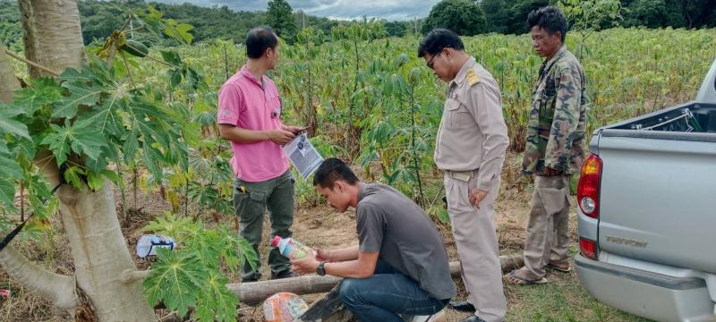 วันที่ 23 กรกฎาคม 2567 องค์การบริหารส่วนตำบลแม่ลาน โดย นายโสภณ มีมัง นายกองค์การบริหารส่วนตำบลแม่ลาน มอบหมายให้ นายเสาร์คำ แก้วปลูก รองนายกองค์การบริหารส่วนตำบลแม่ลาน พร้อมด้วย สมาชิกสภาองค์การบริหารส่วนตำบลแม่ลาน และ เจ้าพนักงานป้องกันและสาธารณภัยฯ ร่วมกับเกษตรอำเภอลี้ ลงพื้นที่ตรวจสอบแปลงปลูกมันสำปะหลัง บ้านหนองมะล้อ หมู่ที่ 2 ตำบลแม่ลาน อำเภอลี้ จังหวัดลำพูน พบว่ามีการระบาดของไรแดง โดยเบื้องต้นเมื่อสอบถามถึงวิธีการป้องกันกำจัดจากเกษตรกรเจ้าของแปลงปลูกรับทราบว่าส่วนใหญ่จะใช้ยาป้องกันกำจัดเพลี้ยไฟมาฉีดพ่นหวังทำลาย ซึ่งเป็นการใช้สารเคมีกำจัดผิดกลุ่มแมลงเป็นการเพิ่มต้นทุนการผลิตของเกษตรกรที่ไม่ได้เป็นผลในทางบวก เป็นการสูญเปล่า เพราะการเข้าทำลายแปลงปลูกดังกล่าวเป็นไรแดง เจ้าหน้าที่จึงได้แนะนำให้สารเคมีป้องกันกำจัดไรแดง จำพวก อามีทราซ ไพริดาเบน สไปโรมีเซน เป็นต้น