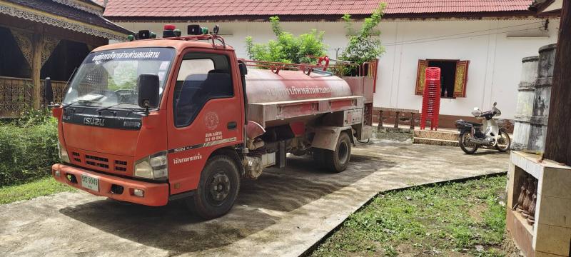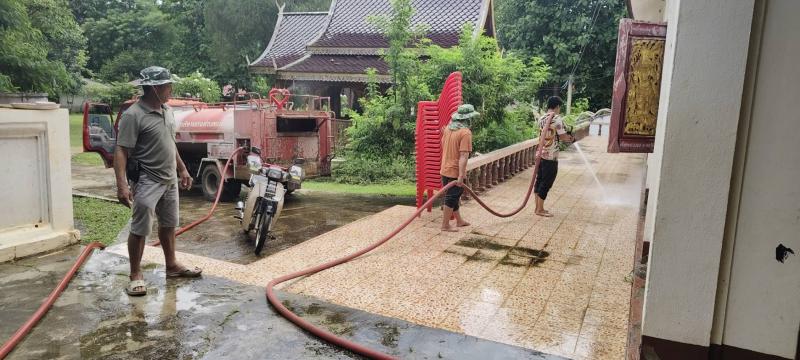 นำรถน้ำฉีดล้างทำความสะอาดวิหารวัดพระพุทธบาทผาผึ้ง บ้านผาต้าย หมู่ที่ 1 ตำบลแม่ลาน อำเภอลี้ จังหวัดลำพูน