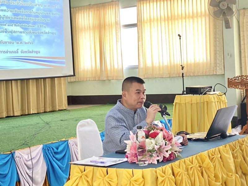 รายละเอียด : วันที่ 13 กันยายน 2566 องค์การบริหารส่วนตำบลแม่ลาน โดย นายโสภณ มีมัง นายกองค์การบริหารส่วนตำบลแม่ลาน มอบหมายให้ นายเสาร์คำ แก้วปลูก รองนายกองค์การบริหารส่วนตำบลแม่ลาน เข้าร่วมประชุมชุดปฏิบัติการประจำตำบลตามโครงการเสริมสร้างประสิทธิภาพความเข้มแข็งภายในหมู่บ้านและชุมชน ประจำปีงบประมาณ พ.ศ.2566 กิจกรรมหลัก เสริมสร้างประสิทธิภาพความเข้มแข็งภายในหมู่บ้านและชุมชน กิจกรรมย่อย การบำบัดฟื้นฟูผู้ใช้ยาเสพติดโดยชุมชนเป็นฐาน (Community Based Treatment and Rehabilitation : CBTx) กระบวนการติดตามหลังผ่านศูนย์ฟื้นฟูสภาพทางสังคมจังหวัดลำพูน โดยมี นายวิวัฒน์ จันทร์โอภาส นายอำเภอลี้ เป็นประธานเปิดการประชุม ณ หอประชุมที่ว่าการอำเภอลี้ จังหวัดลำพูน