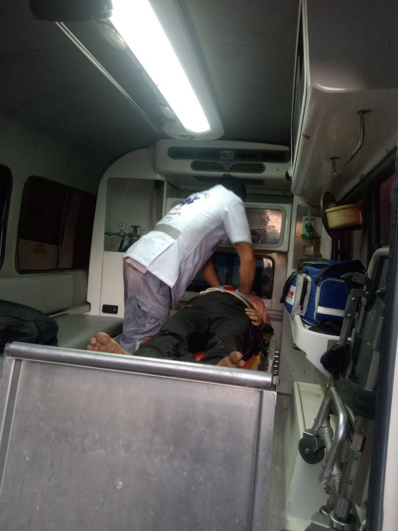 ออกเหตุรับผู้บาดเจ็บ เนื่องจากรถจักรยานยนต์ล้มเอง บริเวณสะพานห้วยปลาขาว ระหว่างสถานีควบคุมไฟป่าแม่ปิงไปอุทยานแห่งชาติแม่ปิง อำเภอลี้ จังหวัดลำพูน