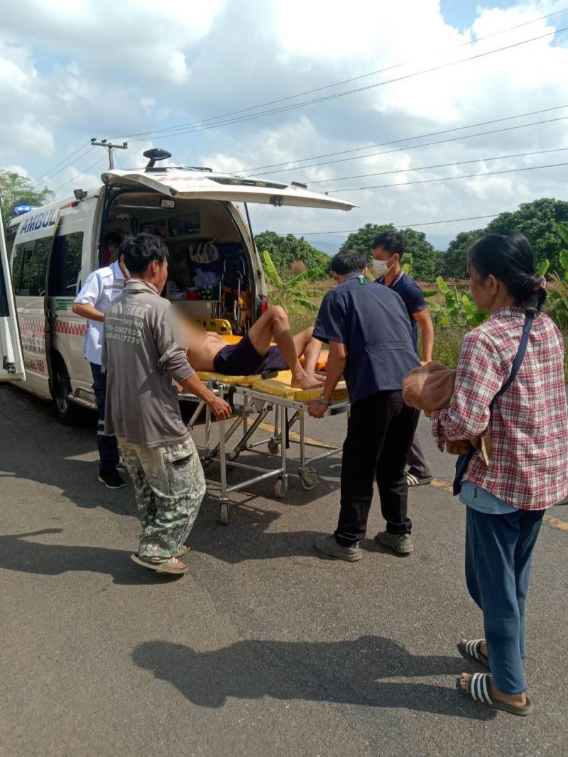 ประสานส่งต่อผู้ป่วยระหว่างทางให้กับเจ้าหน้าที่โรงพยาบาลลี้ เพื่อนำผู้ป่วยไปรักษาต่อ ณ โรงพยาบาลลี้ อำเภอลี้ จังหวัดลำพูน