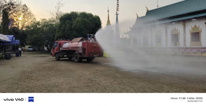 ลงพื้นที่พรมน้ำบริเวณสนามวัดแม่ลาน บ้านแม่ลาน หมู่ที่ 3 ตำบลแม่ลาน อำเภอลี้ จังหวัดลำพูน