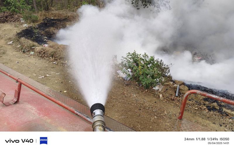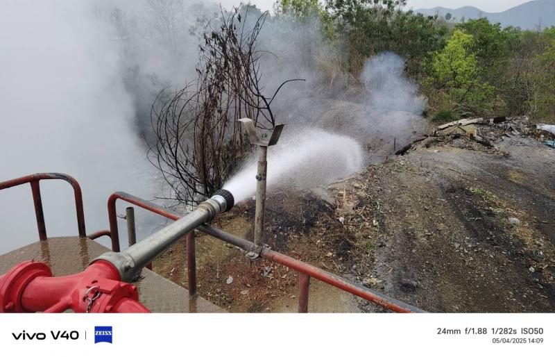 ลงพื้นที่นำรถบรรทุกน้ำดับไฟไหม้ บริเวณบ่อขยะบ้านแม่ลาน หมู่ที่ 3 ตำบลแม่ลาน อำเภอลี้ จังหวัดลำพูน