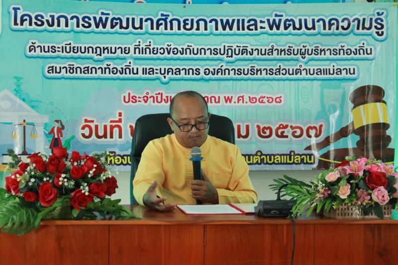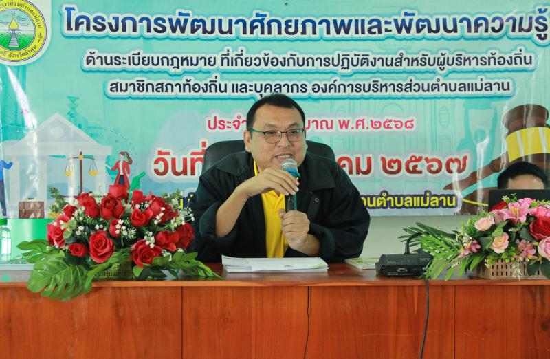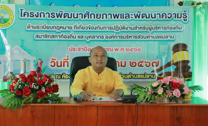 วันที่ 26 ธันวาคม 2567 เวลา 08.00 น. องค์การบริหารส่วนตำบลแม่ลาน นำโดย นายโสภณ มีมัง นายกองค์การบริหารส่วนตำบลแม่ลาน พร้อมด้วยคณะผู้บริหาร สมาชิกสภาองค์การบริหารส่วนตำบลแม่ลาน หัวหน้าส่วนราชการ พนักงานและเจ้าหน้าที่องค์การบริหารส่วนตำบลแม่ลาน จัดการอบรมและประชุมเชิงปฎิบัติการโครงการพัฒนาศักยภาพและพัฒนาความรู้ด้านระเบียบกฎหมายที่เกี่ยวข้องกับการปฏิบัติงาน นโยบาย No Gift Policy การไม่รับของขวัญและของกำนัลทุกชนิดจากการปฎิบัติหน้าที่ สำหรับผู้บริหารส่วนท้องถิ่น สมาชิกสภาท้องถิ่นและบุคลากรองค์การบริหารส่วนตำบลแม่ลาน ประจำปีงบประมาณ พ.ศ.2568 มีวัตถุประสงค์เพื่อปลูกจิตสำนึกหรือสร้างวัฒนธรรมให้เจ้าหน้าที่ในการปฎิเสธการรับของขวัญและของกำนัลทุกชนิดจากการปฎิบัติหน้าที่ โดยได้รับเกียรติจาก นายสุพจน์ บารมี ท้องถิ่นอำเภอลี้ จังหวัดลำพูน มาเป็นวิทยากรผู้บรรยาย โดยมีผู้เข้าร่วมกิจกรรม ดังนี้ คณะผู้บริหาร จำนวน 4 คน ข้าราชการ 15 คน พนักงานจ้างภารกิจ 5 คน ลูกจ้างทั่วไป 10 คน และพนักงานจ้างเหมาบริการ จำนวน 5 คน ณ ห้องประชุมองค์การบริหารส่วนตำบลแม่ลาน ชั้น 2 อำเภอลี้ จังหวัดลำพูน
