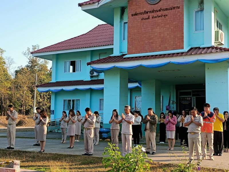 วัน จันทร์ ที่ 8 มกราคม 2567 เวลา 08.30 น. องค์การบริหารส่วนตำบลแม่ลาน โดย นายโสภณ มีมัง นายกองค์การบริหารส่วนตำบลแม่ลาน มอบหมายให้ นายเสาร์คำ แก้วปลูก รองนายกองค์การบริหารส่วนตำบลแม่ลาน พร้อมด้วยคณะผู้บริหาร ปลัดองค์การบริหารส่วนตำบลแม่ลาน หัวหน้าส่วนราชการ ข้าราชการ และพนักงาน เจ้าหน้าที่องค์การบริหารส่วนตำบลแม่ลาน ได้ดำเนินกิจกรรม เข้าแถวเคารพธงชาติสร้างความจงรักภักดีต่อสถาบันชาติ ศาสนา และ พระมหากษัตริย์ เพื่อเป็นการสนับสนุนคุณธรรมจริยธรรมให้แก่คณะผู้บริหาร พนักงานองค์การบริหารส่วนตำบลแม่ลาน ส่งเสริมสร้างความจงรักภักดี ต่อสถาบันชาติ ศาสนา และพระมหากษัตริย์ ทั้งการแจ้งข้อมูลข่าวสารงานต่างๆ แก่พนักงาน เพื่อให้มีลักษณะเป็นองค์กรแห่งการเรียนรู้อย่างสม่ำเสมอ เพื่อนำมาประยุกต์ใช้ในการปฏิบัติ ราชการได้อย่างถูกต้อง รวดเร็ว และเหมาะสมกับสถานการณ์ มีประสิทธิภาพและพร้อมที่จะบริการประชาชนอย่างทั่วถึง ต่อไป ณ องค์การบริหารส่วนตำบลแม่ลาน อำเภอลี้ จังหวัดลำพูน