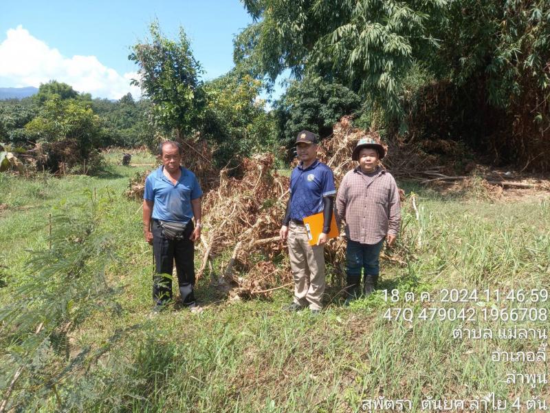 วันที่ 18 ตุลาคม 2567 องค์การบริหารส่วนตำบลแม่ลาน โดย นายโสภณ มีมัง นายกองค์การบริหารส่วนตำบลแม่ลาน มอบหมายให้ นายสุริยา ปวรรณา เจ้าพนักงานป้องกันและสาธารณภัยฯ ร่วมกับ เกษตรอำเภอลี้ ฝ่ายปกครอง และสมาชิกสภาองค์การบริหารส่วนตำบลแม่ลาน ลงสำรวจพื้นที่การเกษตรของราษฎร บ้านแม่กองวะ หมู่ที่ 4 อำเภอลี้ จังหวัดลำพูน ที่ได้รับความเสียหายจากอุทกภัยที่ผ่านมา