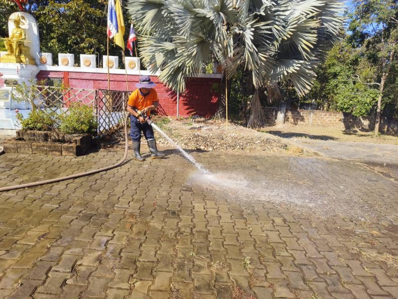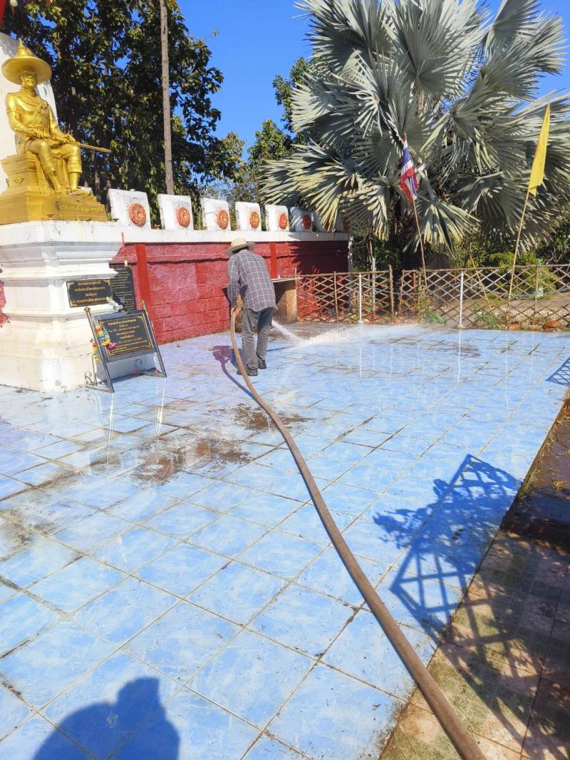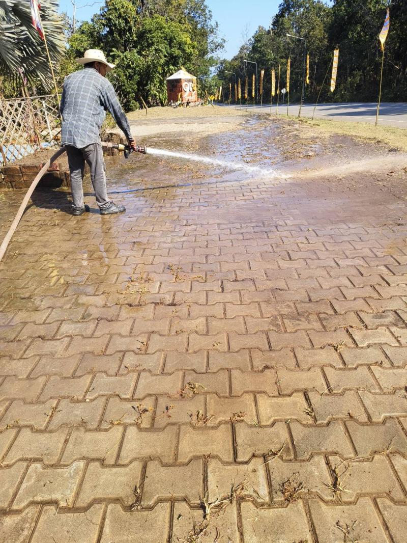นำรถน้ำฉีดล้างทำความสะอาดลานหน้าพุทธอุทยานชัยยะสุขังปางประทีป ณ พุทธอุทยานเฉลิมพระเกียรติ 80 พรรษา พุทธอุทยานชัยยะสุขังปางประทีป (แท่นดอกไม้) ตำบลนาทราย อำเภอลี้ จังหวัดลำพูน