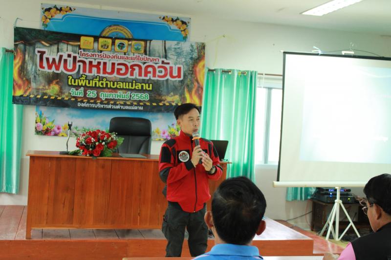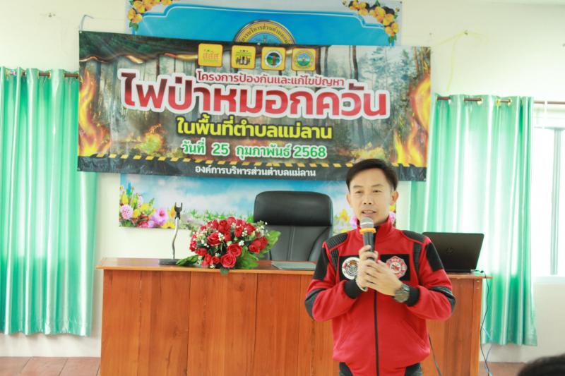 วันที่ 25 กุมภาพันธ์ 2568 เวลา 08.30 น. องค์การบริหารส่วนตำบลแม่ลาน นำโดย นายโสภณ มีมัง นายกองค์การบริหารส่วนตำบลแม่ลาน พร้อมด้วยคณะผู้บริหาร สมาชิกสภาองค์การบริหารส่วนตำบลแม่ลาน หัวหน้าส่วนราชการ ข้าราชการ และพนักงาน เจ้าหน้าที่องค์การบริหารส่วนตำบลแม่ลาน ได้ดำเนินกิจกรรมอบรม "โครงการป้องกันและแก้ไขปัญหาไฟป่าหมอกควันในพื้นที่ตำบลแม่ลาน" เพื่อเพิ่มขีดความสามารถขององค์กรปกครองส่วนท้องถิ่นในการส่งเสริมและสนับสนุนให้เกิดความเข้มแข็งของชุมชน ควบคู่กับการร่วมกันส่งเสริมให้ชุมชนท้องถิ่นจัดการตนเองสู่การเป็นชุมชนท้องถิ่นน่าอยู่ โดยสำนักงานกองทุนสนับสนุนการสร้างเสริมสุขภาพ (สสส.) ประเด็นขับเคลื่อนงาน "โครงการป้องกันและแก้ไขปัญหาไฟป่าหมอกควันในพื้นที่ตำบลแม่ลาน" โดยมี นายโสภณ มีมัง นายกองค์การบริหารส่วนตำบลแม่ลาน เป็นประธานในพิธีกล่าวเปิดการอบรมดังกล่าวฯ และมีนายกิตติ ธงสิบสอง หัวหน้าสำนักปลัดองค์การบริหารส่วนตำบลแม่ลาน กล่าวรายงานต่อท่านประธานในพิธีฯ ได้รับเกียรติจาก นายธิติศักดิ์ เขื่อนเพชร เจ้าพนักงานป้องกันและบรรเทาสาธารณภัยชำนาญงาน เทศบาลตำบลลี้ แล