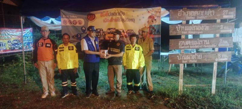 ร่วมให้การต้อนรับ นายพลภัทร์ ประภัสระกูล ปลัดอำเภอลี้ ลงพื้นที่ตรวจเยี่ยม พร้อมมอบอาหารและเครื่องดื่มเพื่อเป็นขวัญกำลังใจให้แก่ผู้ปฏิบัติหน้าที่ประจำจุดบริการประชาชนตำบลแม่ลานช่วงเทศกาลสงกรานต์ ระหว่างวันที่ 11 เมษายน 2568 ถึง วันที่ 17 เมษายน 2568 ใน "โครงการเฝ้าระวัง 7 วันอันตราย ช่วงเทศกาลสงกรานต์" ประจำปีงบประมาณ 2568 เพื่อลดปัจจัยเสี่ยงการเกิดอุบัติเหตุและการให้บริการแก่ผู้ใช้รถใช้ถนน ประชาชน และนักท่องเที่ยว