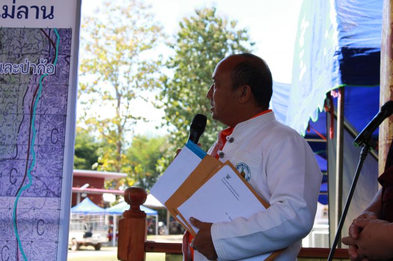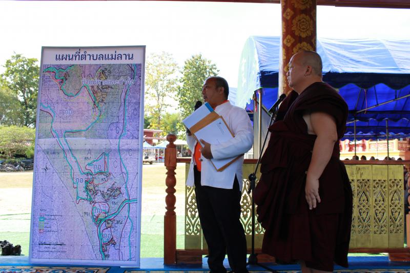 พร้อมยืนหนังสือติดตามการขอยกเลิกพื้นที่ป่าไม้ถาวรในเขตพื้นที่ตำบลแม่ลาน ผ่านอธิบดีกรมป่าไม้ ณ วัดเด่นเหม้า บ้านเด่นเหม้า ตำบลแม่ลาน อำเภอลี้ จังหวัดลำพูน