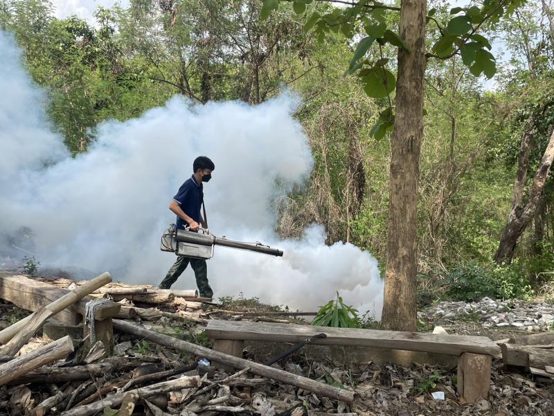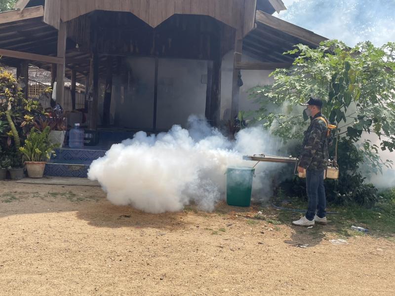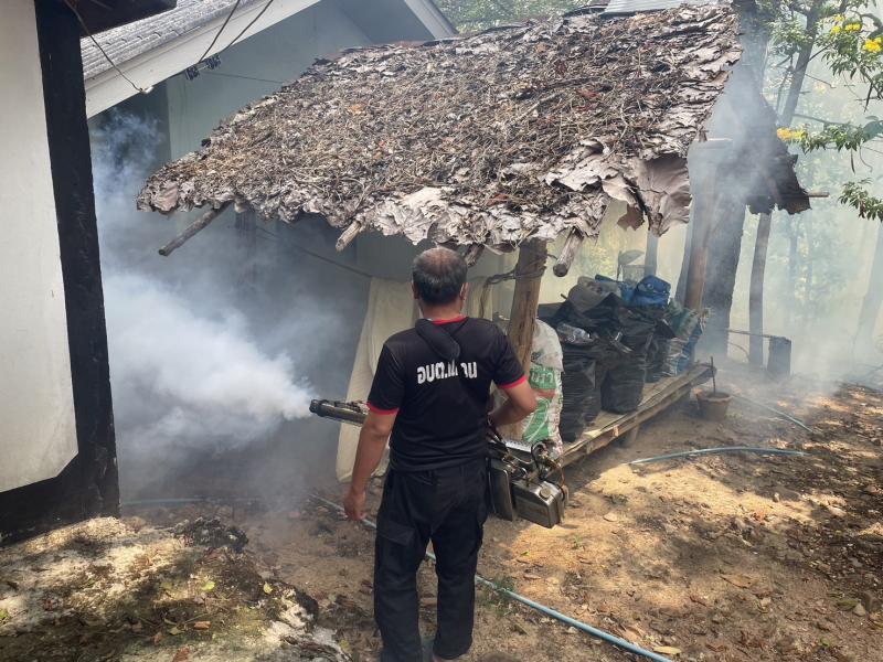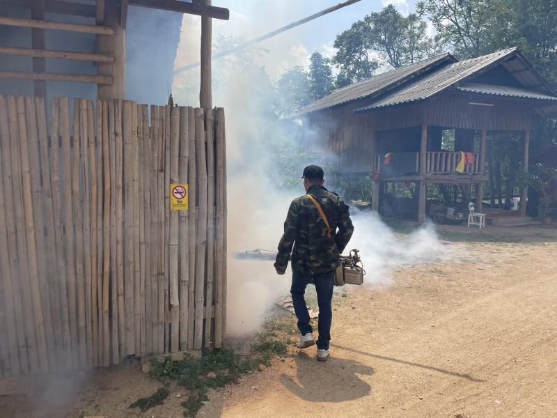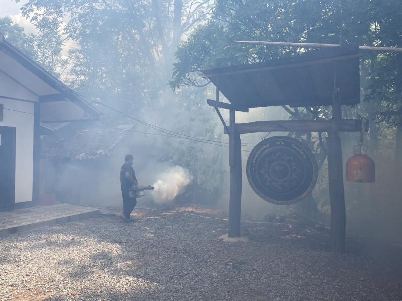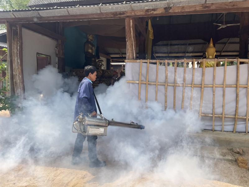 วันที่ 26 พฤษภาคม 2566 องค์การบริหารส่วนตำบลแม่ลาน โดย นายโสภณ มีมัง นายกองค์การบริหารส่วนตำบลแม่ลาน มอบหมายให้เจ้าหน้าที่องค์การบริหารส่วนตำบลแม่ลาน ร่วมกับ รพ.สต.แม่ลาน และอสม.บ้านแม่กองวะ ลงพื้นที่ดำเนินการพ่นหมอกควัน เก็บภาชนะและทำลายแหล่งเพาะพันธุ์ยุง บริเวณวัดศิริชัยมงคล บ้านแม่กองวะ หมู่ที่ 4 ตำบลแม่ลาน อำเภอลี้ จังหวัดลำพูน รอบที่ 3 เพื่อควบคุมการระบาดของโรคไข้มาลาเรีย