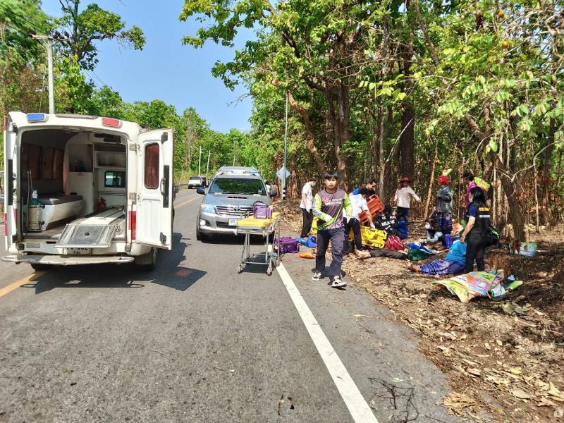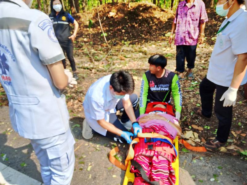 รายละเอียด : วันที่ 11 เมษายน 2567 องค์การบริหารส่วนตำบลแม่ลาน โดย นายโสภณ มีมัง นายกองค์การบริหารส่วนตำบลแม่ลาน มอบหมายให้เจ้าหน้าที่กู้ชีพองค์การบริหารส่วนตำบลแม่ลาน ร่วมกับเจ้าหน้าที่กู้ชีพองค์การบริหารส่วนตำบลนาทราย เจ้าหน้าที่กู้ชีพเทศบาลตำบลวังดิน โรงพยาบาลลี้ และมูลนิธิพุทไธสวรรค์ ออกเหตุรับผู้บาดเจ็บ บริเวณถนนเส้นลี้ - ก้อ ใกล้พุทธอุทยานเฉลิมพระเกียรติ 80 พรรษา พุทธอุทยานชัยยะสุขังปางประทีป และบ้านผาต้าย หมู่ที่ 1 ตำบลแม่ลาน อำเภอลี้ จังหวัดลำพูน จำนวน 13 ราย โดยเป็นเด็ก 6 ราย ผู้ใหญ่ 7 ราย เนื่องจากรถยนต์เสียหลักชนเสาไฟฟ้าส่องสว่าง เบื้องต้นได้ทำการปฐมพยาบาล นำตัวส่งโรงพยาบาลลี้ อำเภอลี้ จังหวัดลำพูน เพื่อทำการรักษาต่อไป