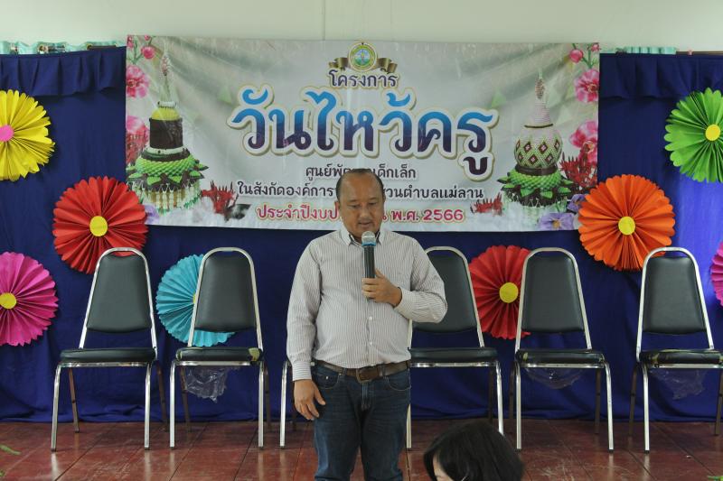 วันที่ 22 มิถุนายน 2566 องค์การบริหารส่วนตำบลแม่ลาน นำโดย นายโสภณ มีมัง นายกองค์การบริหารส่วนตำบลแม่ลาน เป็นประธานในพิธี เปิดโครงการวันไหว้ครู ศูนย์พัฒนาเด็กเล็กในสังกัดองค์การบริหารส่วนตำบลแม่ลาน ประจำปีงบประมาณ พ.ศ.2566 โดยมี ปลัดองค์การบริหารส่วนตำบลแม่ลาน หัวหน้าสำนักปลัดองค์การบริหารส่วนตำบลแม่ลาน พนักงานเจ้าหน้าที่กองการศึกษา คณะครูและเด็กศูนย์พัฒนาเด็กเล็กในสังกัดองค์การบริหารส่วนตำบลแม่ลาน ร่วมกิจกรรม ณ ห้องประชุมองค์การบริหารส่วนตำบลแม่ลาน ชั้น 2 ตำบลแม่ลาน อำเภอลี้ จังหวัดลำพูน