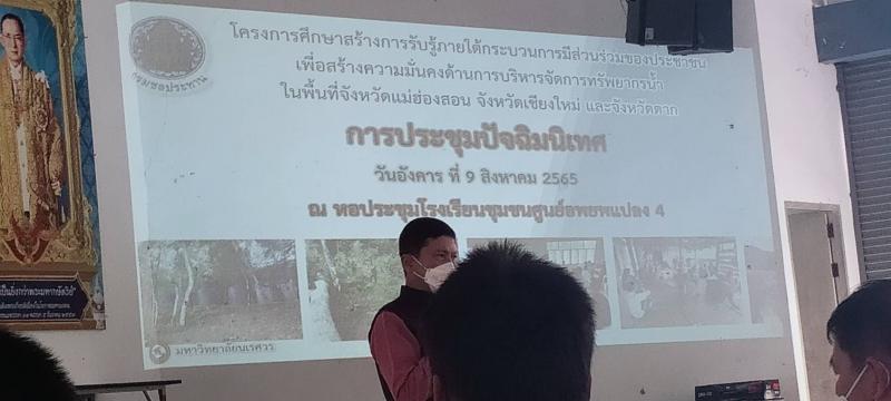 วันที่ 9 สิงหาคม 2565 องค์การบริหารส่วนตำบลแม่ลาน นำโดย นายโสภณ มีมัง นายกองค์การบริหารส่วนตำบลแม่ลาน มอบหมายให้ นายเสาร์คำ แก้วปลูก รองนายกองค์การบริหารส่วนตำบลแม่ลาน เข้าร่วมการประชุมปัจฉิมนิเทศ โครงการศึกษาสร้างการเรียนรู้ภายใต้กระบวนการมีส่วนร่วมของประชาชนเพื่อสร้างความมั่นคงด้านการบริหารจัดการทรัพยากรน้ำในพื้นที่จังหวัดแม่ฮ่องสอน จังหวัดเชียงใหม่ และจังหวัดตาก ณ หอประชุมโรงเรียนชุมชนศูนย์อพยพแปลง 4