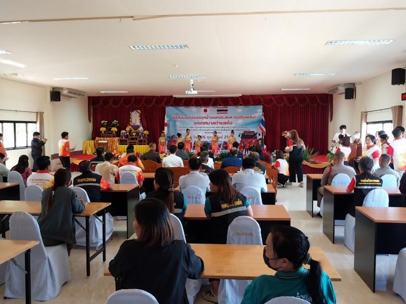 โดยมี นายฮาราดะ มาซารุ กงสุลใหญ่ญี่ปุ่น ณ นครเชียงใหม่ และนายสุกิคิ ทาคาฮิโร รองกงสุลใหญ่ญี่ปุ่น ณ นครเชียงใหม่ เป็นผู้ส่งมอบ และ นายโยธิน ประสงค์ความดี รองผู้ว่าราชการจังหวัดลำพูน เป็นผู้กล่าวต้อนรับ และมีหน่วยงานราชการเข้าร่วม ได้แก่ นายรุ่งโรจน์ สุนทร ท้องถิ่นจังหวัด นายธนา นวลปลอด หัวหน้าสำนักงานป้องกันและบรรเทาสาธารณภัยจังหวัดลำพูน นายรวมศิลป์ มานะจงประเสริฐ ผู้อำนวยการสำนักงานทรัพยากรธรรมชาติและสิ่งแวดล้อมจังหวัดลำพูน นายณัฐภัค อโนต๊ะ ปลัดอำเภอลี้ นางสาวเรืองขวัญิสุริยะปัน หัวหน้าสำนักงานเกษตรอำเภอลี้ นายธนาธิป อุต๊ะมา นายกองค์การบริหารส่วนตำบลเวียงแก้ว กำนัน ผู้ใหญ่บ้าน สมาชิกสภาเทศบาลตำบลก้อ และพนักงานเจ้าหน้าที่เทศบาลตำบลก้อ เข้าร่วม