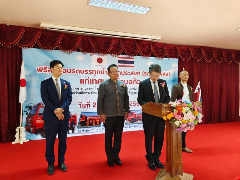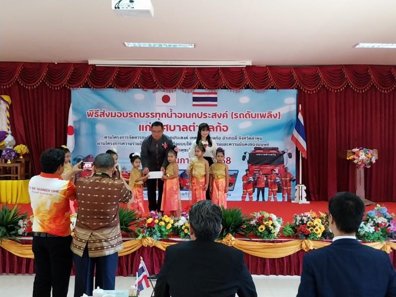 เข้าร่วมพิธีส่งมอบรถบรรทุกน้ำอเนกประสงค์ (รถดับเพลิง) โดยกงสุลใหญ่ญี่ปุ่น ณ นครเชียงใหม่ มอบแก่เทศบาลตำบลก้อ ตามโครงการจัดหารถบรรทุกน้ำอเนกประสงค์ เทศบาลตำบลก้อ อำเภอลี้ จังหวัดลำพูน ผ่านโครงการความร่วมมือทางด้านเศรษฐกิจแบบให้เปล่าเพื่อพื้นฐานและความมั่นคงของมนุษย์ (คุซะโนะเนะ)