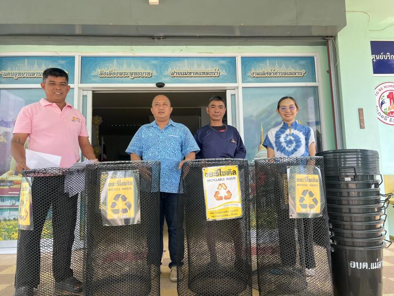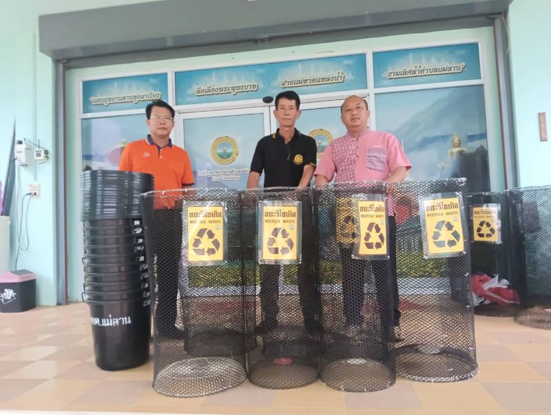 ดำเนินการมอบถังขยะเปียกลดโลกร้อน ละถังขยะรีไซเคิล ให้แก่ผู้นำชุมชน ทั้ง 7 หมู่บ้าน ในพื้นที่ตำบลแม่ลาน
