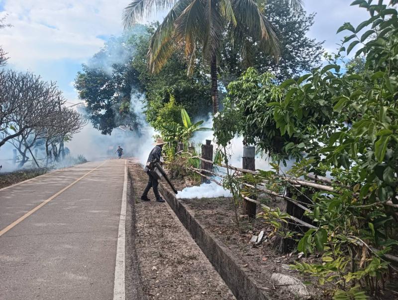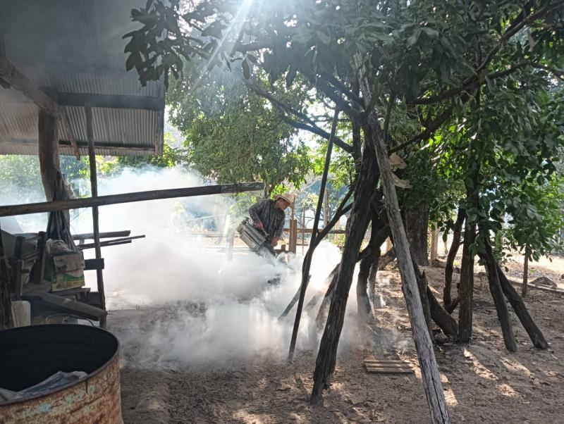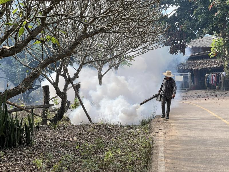 ลงพื้นที่ดำเนินการพ่นหมอกควัน และทำลายแหล่งเพาะพันธุ์ลูกน้ำยุงลาย เพื่อกำจัดยุงตัวแก่ และควบคุมป้องกันการระบาดของโรคไข้ปวดข้อยุงลาย (ชิคุนกุนยา) บริเวณบ้านผู้ป่วย บ้านห้วยทรายขาว หมู่ที่ 7 ตำบลแม่ลาน อำเภอลี้ จังหวัดลำพูน ระยะ 100 เมตร ครั้งที่ 3