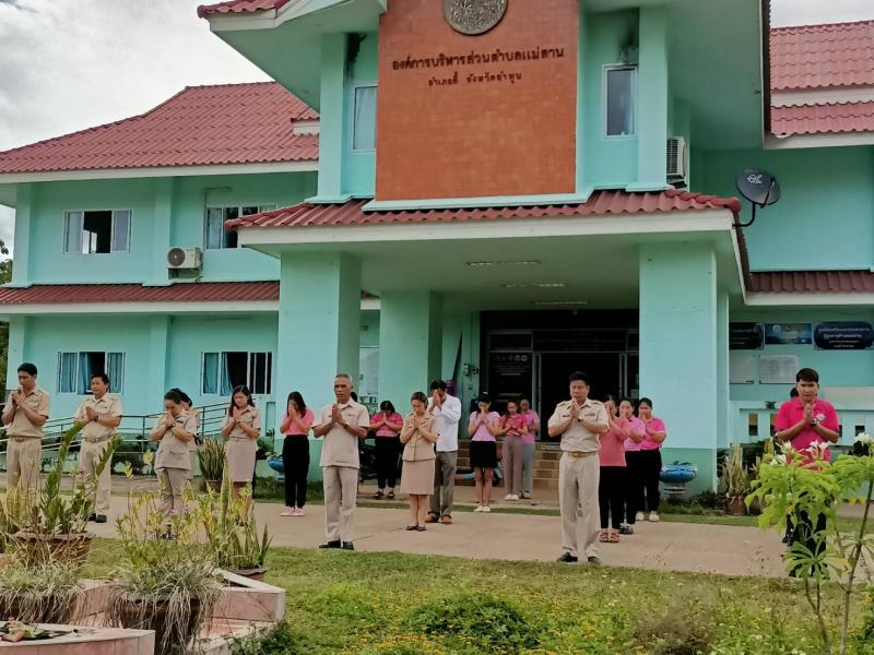 วัน อังคาร ที่ 11 มิถุนายน 2567 เวลา 08.30 น. องค์การบริหารส่วนตำบลแม่ลาน โดย นายโสภณ มีมัง นายกองค์การบริหารส่วนตำบลแม่ลาน มอบหมายให้ นายสมสมัย ปองนาน ปลัดองค์การบริหารส่วนตำบลแม่ลาน พร้อมด้วย หัวหน้าส่วนราชการ ข้าราชการ และพนักงาน เจ้าหน้าที่องค์การบริหารส่วนตำบลแม่ลาน ได้ดำเนินกิจกรรม เข้าแถวเคารพธงชาติสร้างความจงรักภักดีต่อสถาบันชาติ ศาสนา และ พระมหากษัตริย์ เพื่อเป็นการสนับสนุนคุณธรรมจริยธรรมให้แก่คณะผู้บริหาร พนักงานองค์การบริหารส่วนตำบลแม่ลาน ส่งเสริมสร้างความจงรักภักดี ต่อสถาบันชาติ ศาสนา และพระมหากษัตริย์ ทั้งการแจ้งข้อมูลข่าวสารงานต่างๆ แก่พนักงาน เพื่อให้มีลักษณะเป็นองค์กรแห่งการเรียนรู้อย่างสม่ำเสมอ เพื่อนำมาประยุกต์ใช้ในการปฏิบัติ ราชการได้อย่างถูกต้อง รวดเร็ว และเหมาะสมกับสถานการณ์ มีประสิทธิภาพและพร้อมที่จะบริการประชาชนอย่างทั่วถึง ต่อไป ณ องค์การบริหารส่วนตำบลแม่ลาน อำเภอลี้ จังหวัดลำพูน