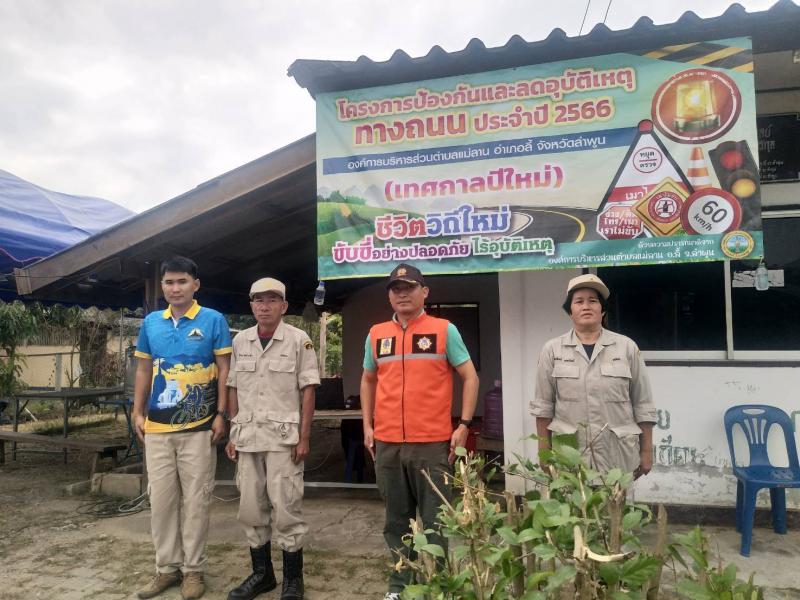 วันที่ 4 มกราคม 2566 องค์การบริหารส่วนตำบลแม่ลาน โดย นายโสภณ มีมัง นายกองค์การบริหารส่วนตำบลแม่ลาน มอบหมายให้งานป้องกันและบรรเทาสาธารณภัยและพนักงานองค์การบริหารส่วนตำบลแม่ลาน ร่วมกับสมาชิกสภาองค์การบริหารส่วนตำบลแม่ลาน และ อปพร. ปฏิบัติหน้าที่ประจำจุดบริการประชาชนตำบลแม่ลานช่วงปีใหม่ ระหว่างวันที่ 29 ธันวาคม 2565 ถึง วันที่ 4 มกราคม 2566 ใน "โครงการป้องกันและลดอุบัติเหตุทางถนน" ประจำปีงบประมาณ 2566 เพื่อลดปัจจัยเสี่ยงการเกิดอุบัติเหตุและการให้บริการแก่ผู้ใช้รถใช้ถนน ประชาชน และนักท่องเที่ยว ณ จุดบริการประชาชน บ้านแม่ลาน อำเภอลี้ จังหวัดลำพูน