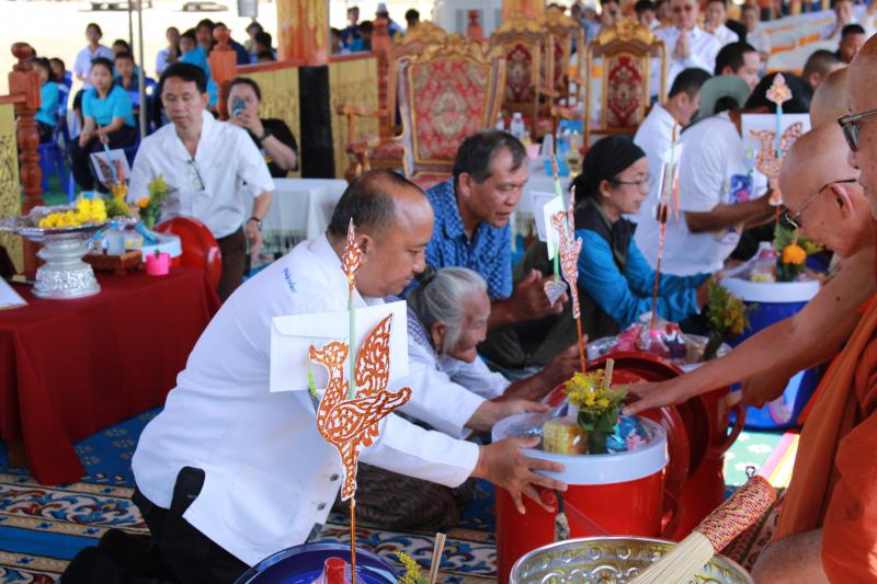 โดยมี นายสิริพล รักษนาเวศ ผู้อำนวยการกองพัฒนาแหล่งน้ำขนาดกลาง เป็นประธานในพิธีสรงน้ำพระธาตุและทอดผ้าป่า