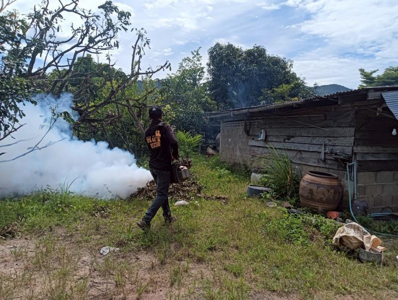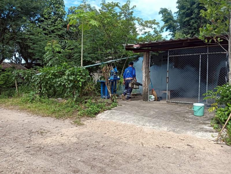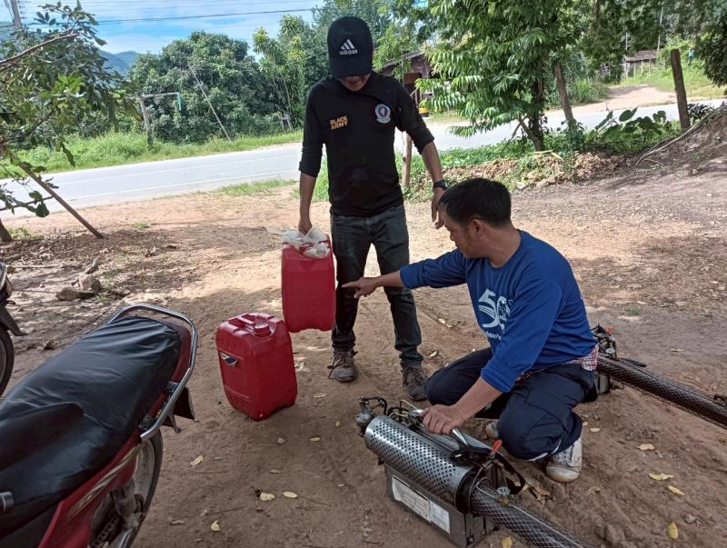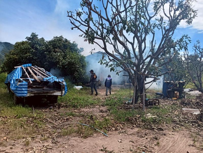 ลงพื้นที่ดำเนินการพ่นหมอกควัน และทำลายแหล่งเพาะพันธุ์ลูกน้ำยุงลาย เพื่อกำจัดยุงตัวแก่ และควบคุม ป้องกันการระบาดของโรคไข้มาลาเรีย (Malaria) บริเวณบ้านผู้ป่วย บ้านเด่นเหม้า หมู่ที่ 5 ตำบลแม่ลาน อำเภอลี้ จังหวัดลำพูน ระยะ 100 เมตร ครั้งที่ 1
