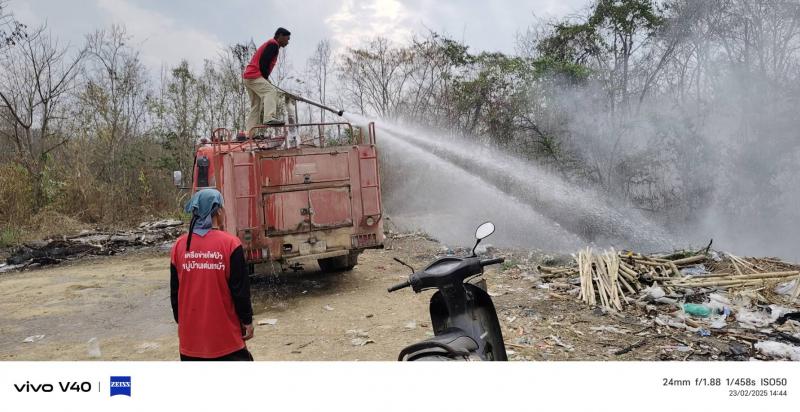 ลงพื้นที่นำรถบรรทุกน้ำดับไฟไหม้ บริเวณบ่อขยะบ้านเด่นเหม้า หมู่ที่ 5 ตำบลแม่ลาน อำเภอลี้ จังหวัดลำพูน