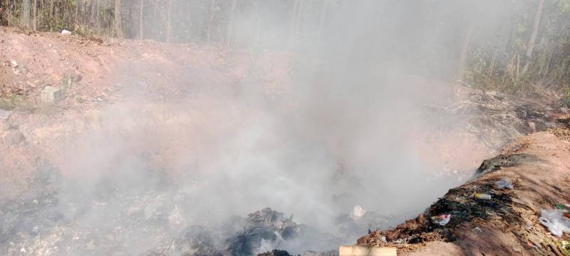 ลงพื้นที่นำรถบรรทุกน้ำดับไฟไหม้ บริเวณบ่อขยะบ้านผาต้าย หมู่ที่ 1 ตำบลแม่ลาน อำเภอลี้ จังหวัดลำพูน