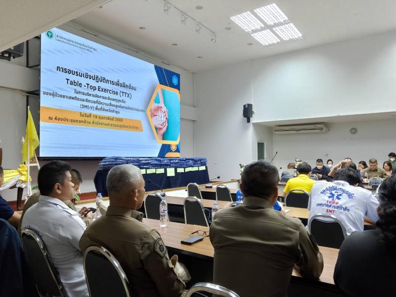 เข้าร่วมการอบรมเชิงปฏิบัติการเพื่อฝึกซ้อม Table-Top Exercise (TTX) ในการบริหารจัดการระงับเหตุฉุกเฉินของผู้ป่วยยาเสพติดและจิตเวชที่มีความเสี่ยงสูงต่อการก่อความรุนแรง (SMI-V) พื้นที่จังหวัดลำพูน