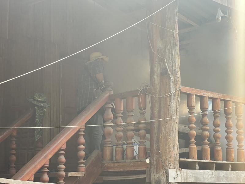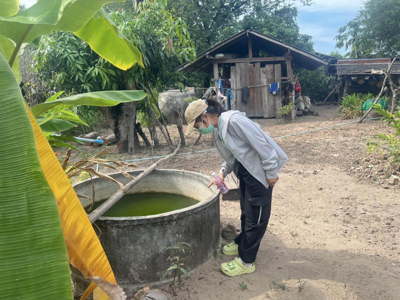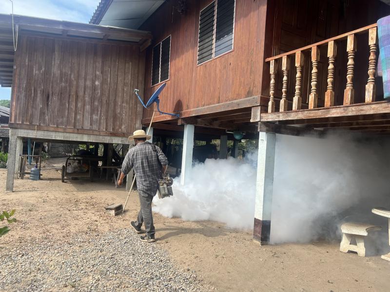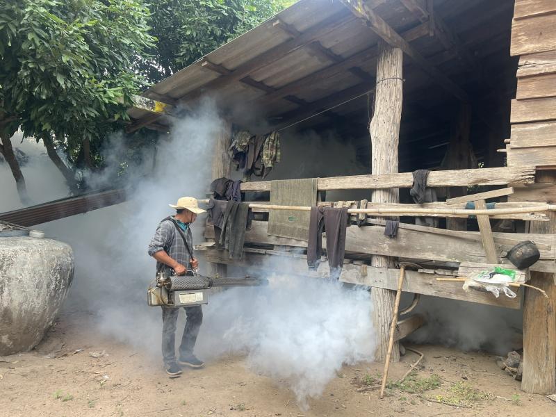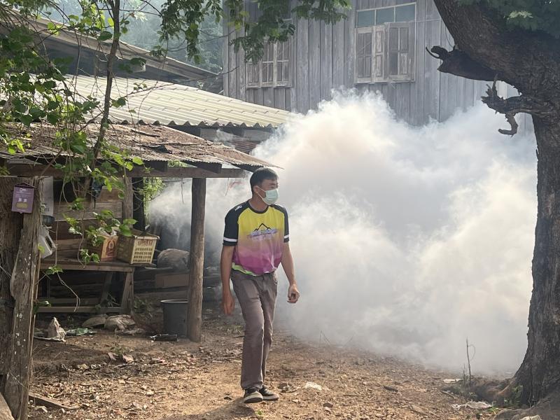 ลงพื้นที่ดำเนินการพ่นหมอกควัน และทำลายแหล่งเพาะพันธุ์ลูกน้ำยุงลาย เพื่อกำจัดยุงตัวแก่ และควบคุมป้องกันการระบาดของโรคไข้ปวดข้อยุงลาย (ชิคุนกุนยา) บริเวณบ้านผู้ป่วย บ้านห้วยทรายขาว หมู่ที่ 7 ตำบลแม่ลาน อำเภอลี้ จังหวัดลำพูน ระยะ 100 เมตร ครั้งที่ 1