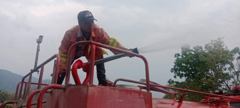 ลงพื้นที่นำรถบรรทุกน้ำดับไฟไหม้ บริเวณบ่อขยะบ้านเด่นเหม้า หมู่ที่ 5 ตำบลแม่ลาน อำเภอลี้ จังหวัดลำพูน