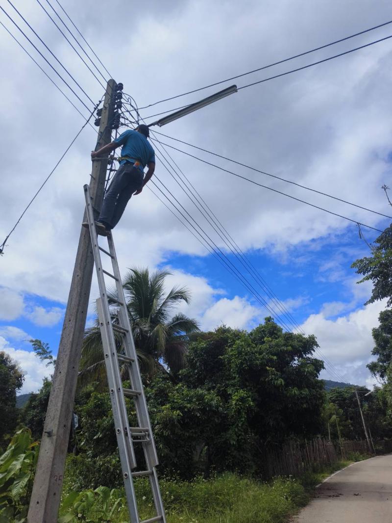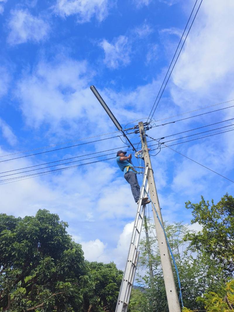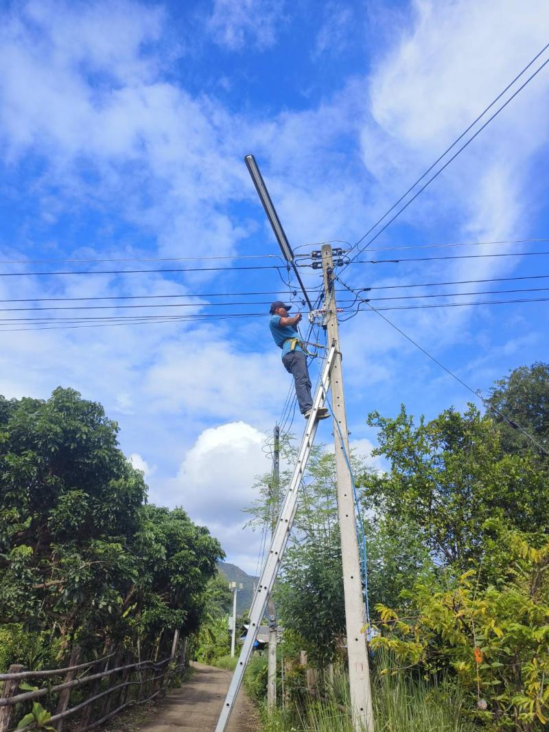ลงพื้นที่ทำการซ่อมแซมไฟกิ่งสาธารณะ บ้านเด่นเหม้า หมู่ที่ 5 บ้านผาต้ายเหนือ หมู่ที่ 6 และบ้านหนองมะล้อ หมู่ที่ 2 ตำบลแม่ลาน อำเภอลี้ จังหวัดลำพูน
