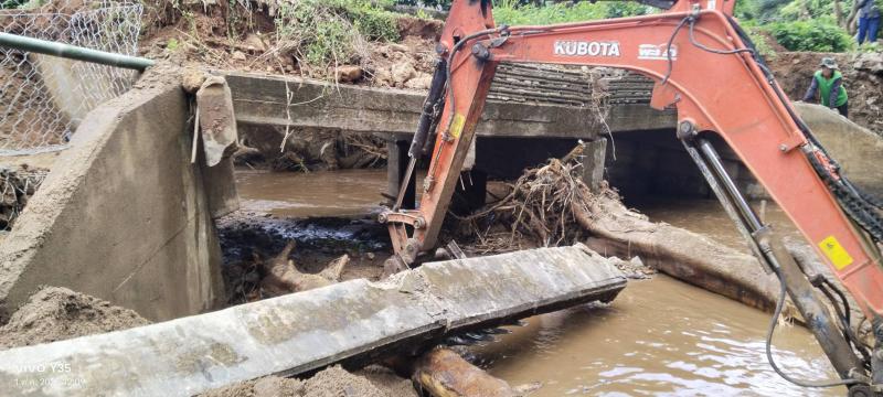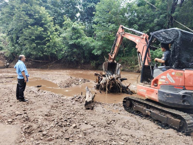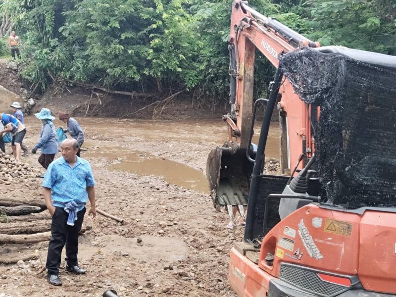 ลงพื้นที่ตรวจสอบและกำกับดูการดำเนินการซ่อมแซมถนนและคอสะพานข้ามห้วยแม่หาด บ้านห้วยทรายขาว หมู่ที่ 7 ตำบลแม่ลาน อำเภอลี้ จังหวัดลำพูน เพื่อแก้ไขและบรรเทาปัญหาความเดือดร้อนเป็นการเบื้องต้น