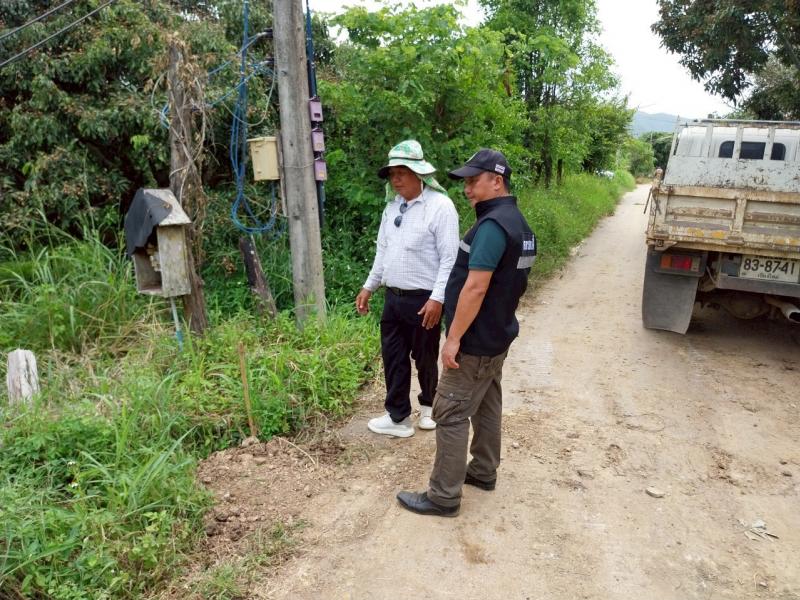 ลงพื้นที่ดำเนินการติดตามความคืบหน้า โครงการวางกล่องเกเบี้ยนป้องกันไหล่ทาง บริเวณถนนและสะพานทางไปบ่อหิน ห้วยป่ายุบ บ้านแม่ลาน หมู่ที่ 3 ตำบลแม่ลาน อำเภอลี้ จังหวัดลำพูน