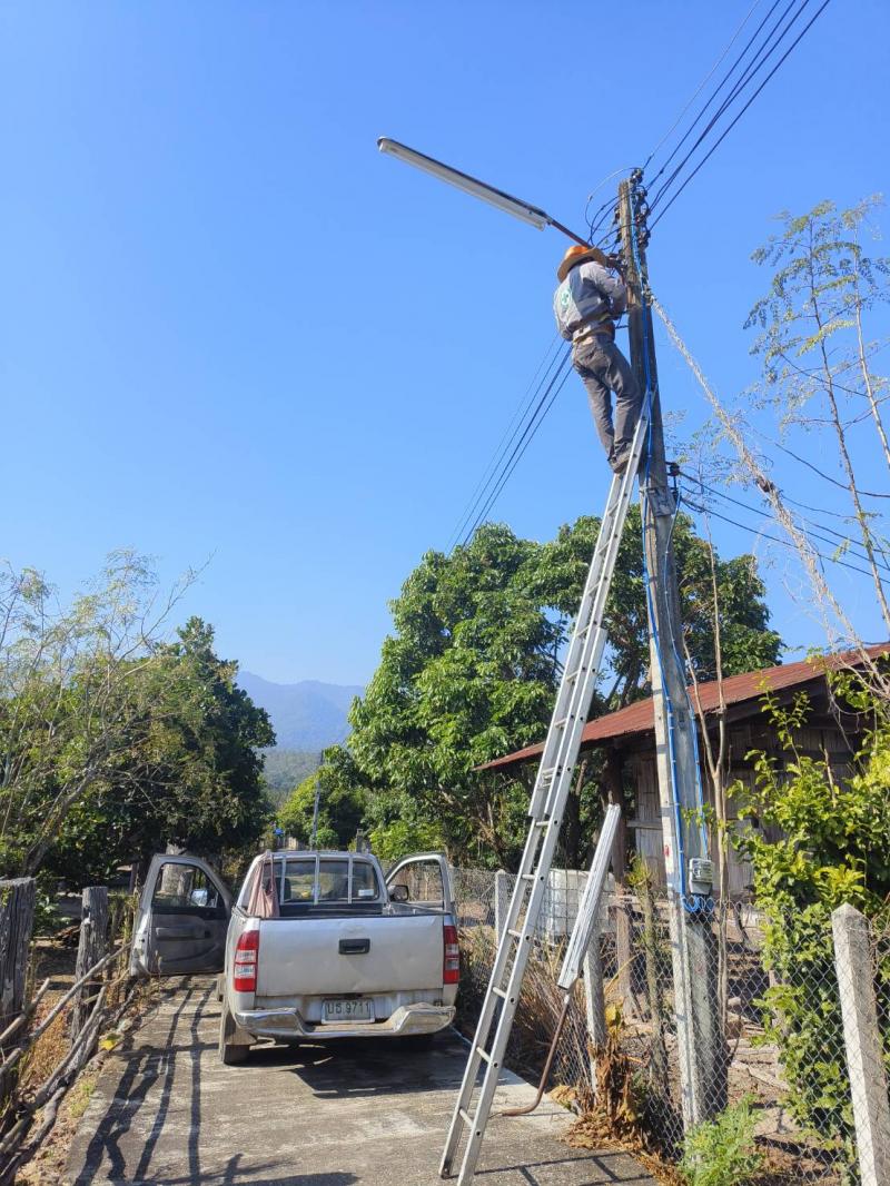 ลงพื้นที่ทำการซ่อมแซมไฟกิ่งสาธารณะ บ้านแม่กองวะ หมู่ที่ 4 และบ้านห้วยทรายขาว หมู่ที่ 7 ตำบลแม่ลาน อำเภอลี้ จังหวัดลำพูน