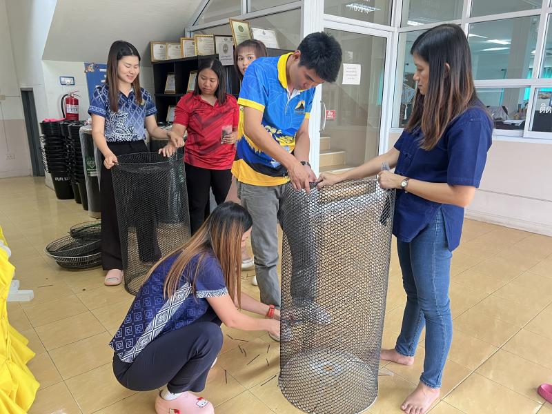 1.ตัดตาข่ายพลาสติกหรือตาข่ายอื่นๆ ยาวประมาณ 1 เมตร 50 เซนติเมตร