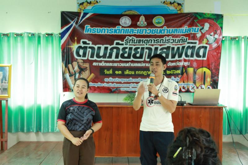 วันที่ 13 กรกฎาคม 2567 องค์การบริหารส่วนตำบลแม่ลาน โดย นายโสภณ มีมัง นายกองค์การบริหารส่วนตำบลแม่ลาน มอบหมายให้ นางชนันนิดา คำทา รองนายกองค์การบริหารส่วนตำบลแม่ลาน พร้อมด้วยข้าราชการ พนักงาน เจ้าหน้าที่องค์การบริหารส่วนตำบลแม่ลาน เข้าร่วมโครงการเด็กและเยาวชนตำบลแม่ลาน รู้ทันเหตุการณ์ร่วมกันต้านยาเสพติด สภาเด็กและเยาวชนตำบลแม่ลาน ณ ห้องประชุมองค์การบริหารส่วนตำบลแม่ลาน ชั้น 2 ตำบลแม่ลาน อำเภอลี้ จังหวัดลำพูน สนับสนุนโดยบ้านพักเด็กและครอบครัวจังหวัดลำพูน ร่วมกับสภาเด็กและเยาวชนตำบลแม่ลาน และองค์การบริหารส่วนตำบลแม่ลาน