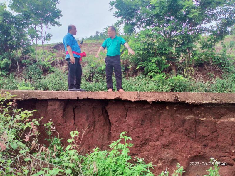วันที่ 28 มิถุนายน 2566 องค์การบริหารส่วนตำบลแม่ลาน นำโดย นายโสภณ มีมัง นายกองค์การบริหารส่วนตำบลแม่ลาน พร้อมด้วย นายเสาร์คำ แก้วปลูก รองนายกองค์การบริหารส่วนตำบลแม่ลาน ผู้อำนวยการกองช่าง พนักงานและเจ้าหน้าที่องค์การบริหารส่วนตำบลแม่ลาน ลงพื้นที่สำรวจถนนการเกษตรที่มีความเสี่ยงต่อการทรุดตัว บริเวณบ้านผาต้ายเหนือ หมู่ที่ 6 และฝายบ้านผาต้าย หมู่ที่ 1 ตำบลแม่ลาน อำเภอลี้ จังหวัดลำพูน เพื่อดำเนินการซ่อมแซม