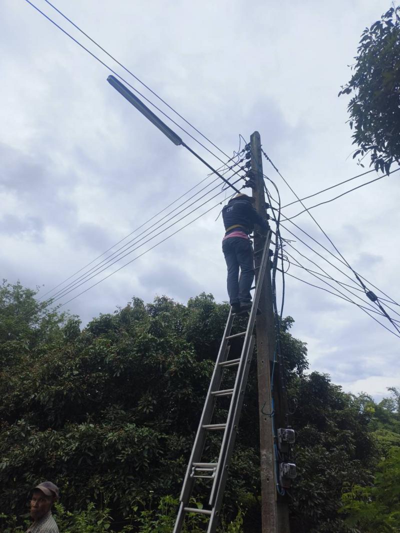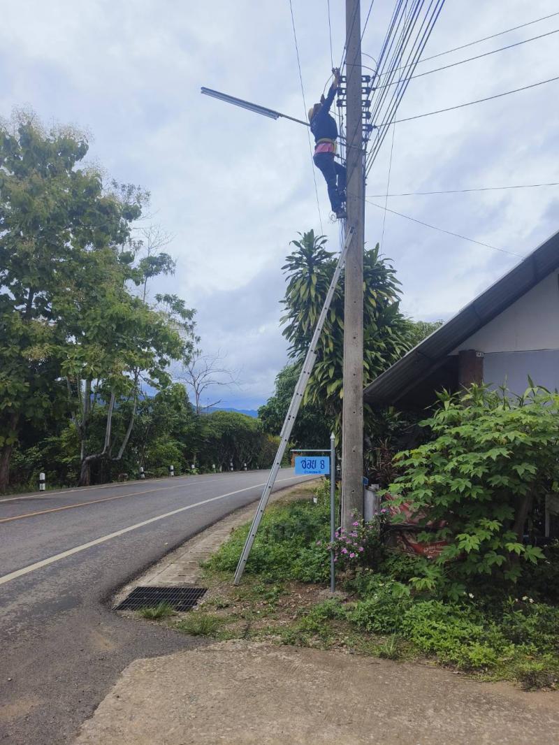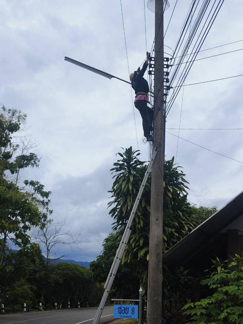 ลงพื้นที่ทำการซ่อมแซมไฟกิ่งสาธารณะ บ้านหนองมะล้อ หมู่ที่ 2 ตำบลแม่ลาน อำเภอลี้ จังหวัดลำพูน
