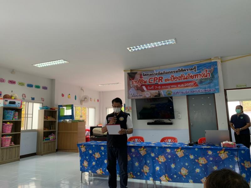 วันที่ 7 กรกฎาคม พ.ศ. 2565 นายเสาร์คำ แก้วปลูก รองนายกองค์การบริหารส่วนตำบลแม่ลาน คณะผู้บริหาร ข้าราชการ พนักงาน เด็กและผู้ปกครองเด็กศูนย์พัฒนาเด็กเล็กในสังกัดตำบลแม่ลาน ร่วมกิจกรรม “โครงการจัดกิจกรรมให้ความรู้การกู้ชีพ(CPR) และป้องกันภัยทางน้ำ” สนับสนุนโดยสำนักงานกองทุนสนับสนุนการสร้างเสริมสุขภาพ (สสส.) โดยมีโรงพยาบาลส่งเสริมส่วนตำบลแม่ลานมาให้ความรู้ ณ ศูนย์พัฒนาเด็กเล็กตำบลแม่ลาน อำเภอลี้ จังหวัดลำพูน