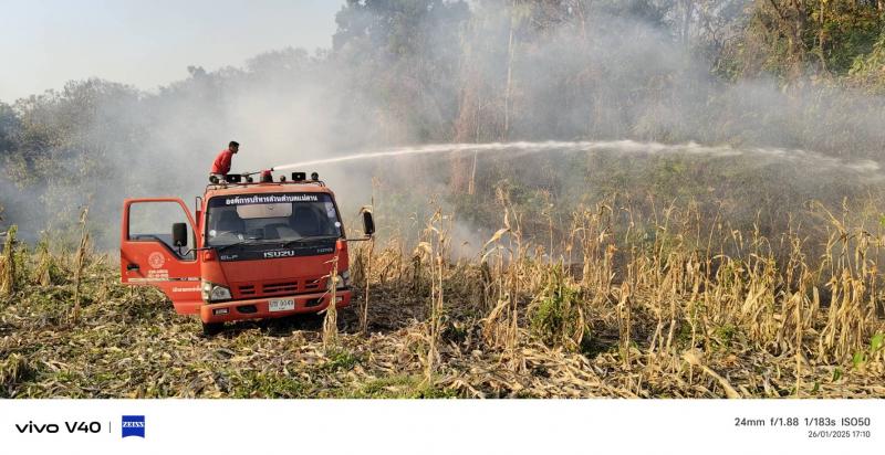 ลงพื้นที่นำรถบรรทุกน้ำดับไฟไหม้ บริเวณพื้นที่บ้านหนองมะล้อ หมู่ที่ 2 ตำบลแม่ลาน อำเภอลี้ จังหวัดลำพูน