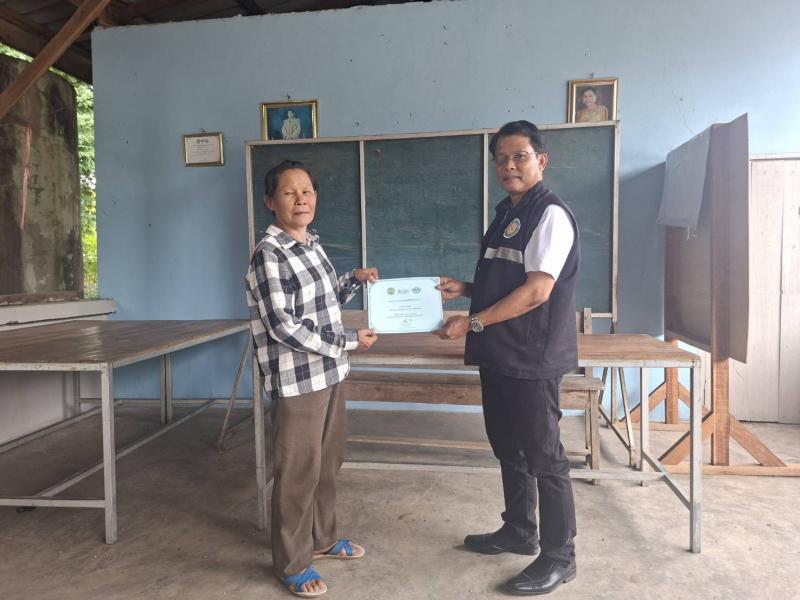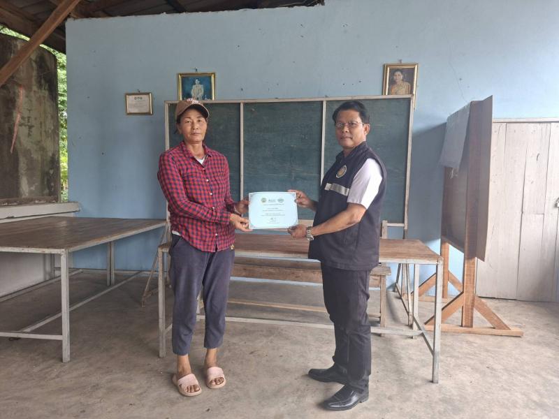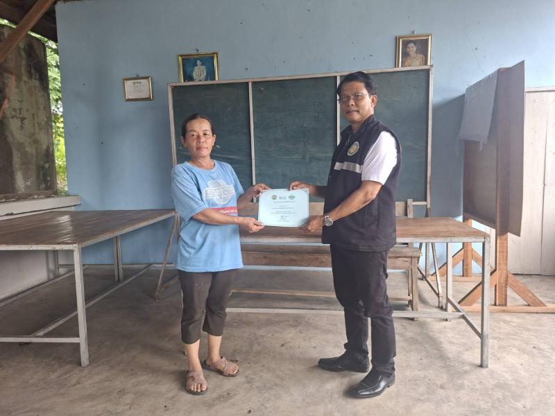 มอบเกียรติบัตรให้แก่ผู้ร่วมโครงการอบรมเชิงปฏิบัติการให้ความรู้โรคไข้เลือดออก ที่ผ่านคัดเลือก บ้านสะอาด ปลอดลูกน้ำยุงลาย ห่างไกลโรคไข้เลือดออก