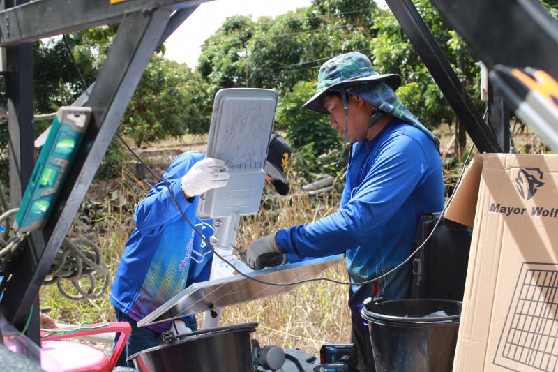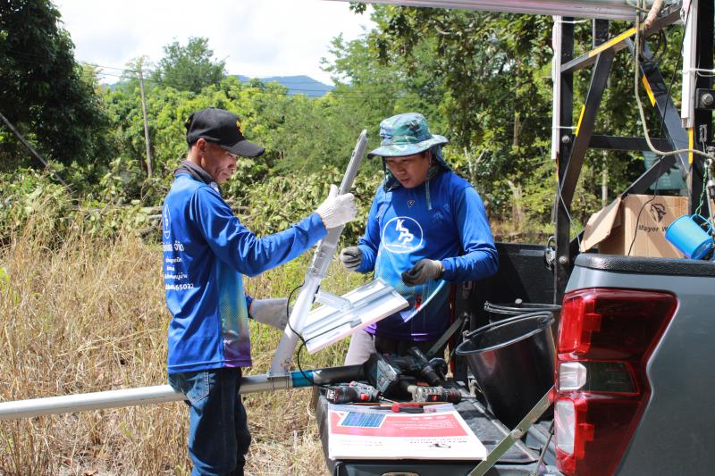 ลงพื้นที่ตรวจดูการดำเนินงานโครงการติดตั้งไฟฟ้าส่องสว่างด้วยสว่างด้วยพลังงานแสงอาทิตย์ (โซล่าเซลล์) พร้อมเสาภายในตำบลแม่ลาน ในพื้นที่ตำบลแม่ลาน อำเภอลี้ จังหวัดลำพูน
