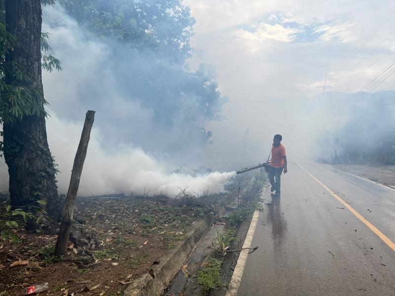 วันที่ 29 สิงหาคม 2567 องค์การบริหารส่วนตำบลแม่ลาน โดย นายโสภณ มีมัง นายกองค์การบริหารส่วนตำบลแม่ลาน มอบหมายให้ นางสาวนริศรา ใจสุยะ เจ้าพนักงานสาธารณสุขปฏิบัติงาน และ เจ้าหน้าที่องค์การบริหารส่วนตำบลแม่ลาน ร่วมกับ รพ.สต.แม่ลาน และ อสม.บ้านหนองมะล้อ ลงพื้นที่ดำเนินการพ่นหมอกควัน เพื่อกำจัดยุงตัวแก่ และควบคุมการระบาดของโรคไข้เลือดออก บริเวณบ้านผู้ป่วย บ้านหนองมะล้อ หมู่ที่ 2 ตำบลแม่ลาน อำเภอลี้ จังหวัดลำพูน ระยะ 100 เมตร ครั้งที่ 2